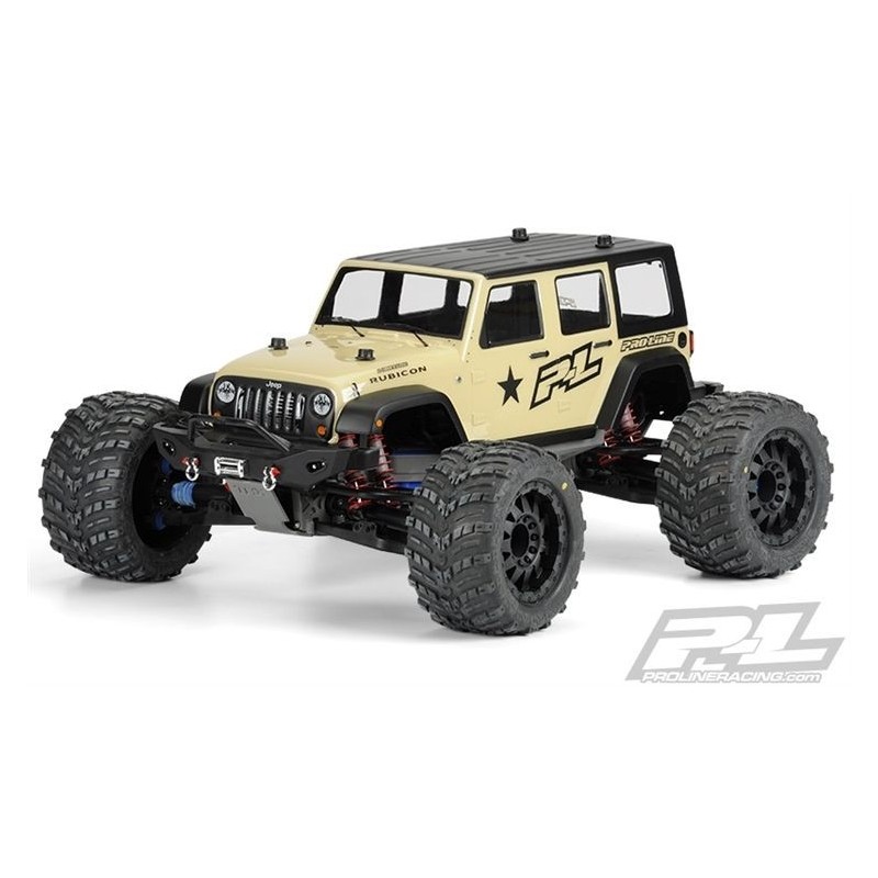 This is a Jeep® Wrangler Unlimited Rubicon body for Monster Truck. The look of the Jeep® Wrangler Unlimited Rubicon is Rugged, tough and has classic styling. Pro-Line has taken the Full-Size Jeep design and scaled it down to exacting specifications so you can have this body on your Monster Truck!