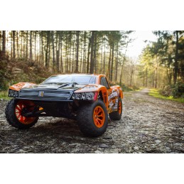 The Jumpshot SC V2 is the short course version of the Jumpshot platform, with front and rear ‘basher’ bumpers ready for the rigors of off-road bashing, whilst the sleek short course body and all-terrain tires give it fantastic looks and great performance! The V2 version is packed with brand new features for maximum fun anywhere you drive it! For extra speed, the new 12-turn 550-size motor with optimized gearing is great for fast acceleration and high top speeds, and the durability improvements include new drivetrain gears, suspension parts and servo saver!
