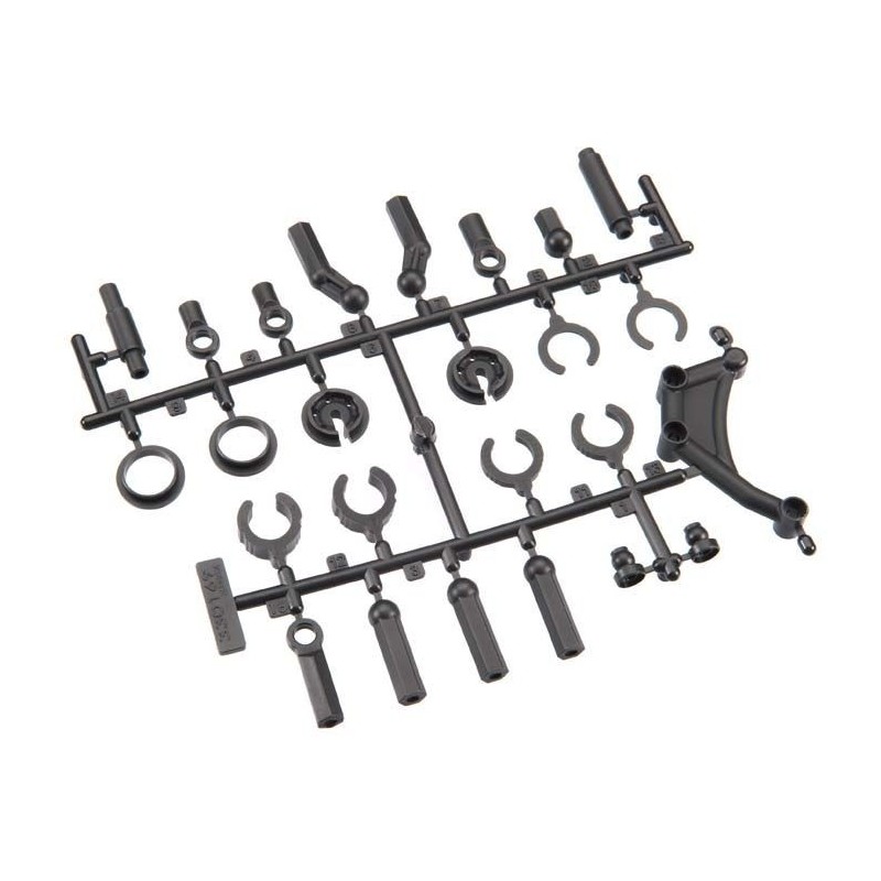This Rod End Set provides all the parts that are needed to secure your Steering and Camber linkages on your ARRMA vehicle. The set also includes a selection of composite Shock Adjustment Collars, Spring Cups and a Rear Motor Guard Mount.