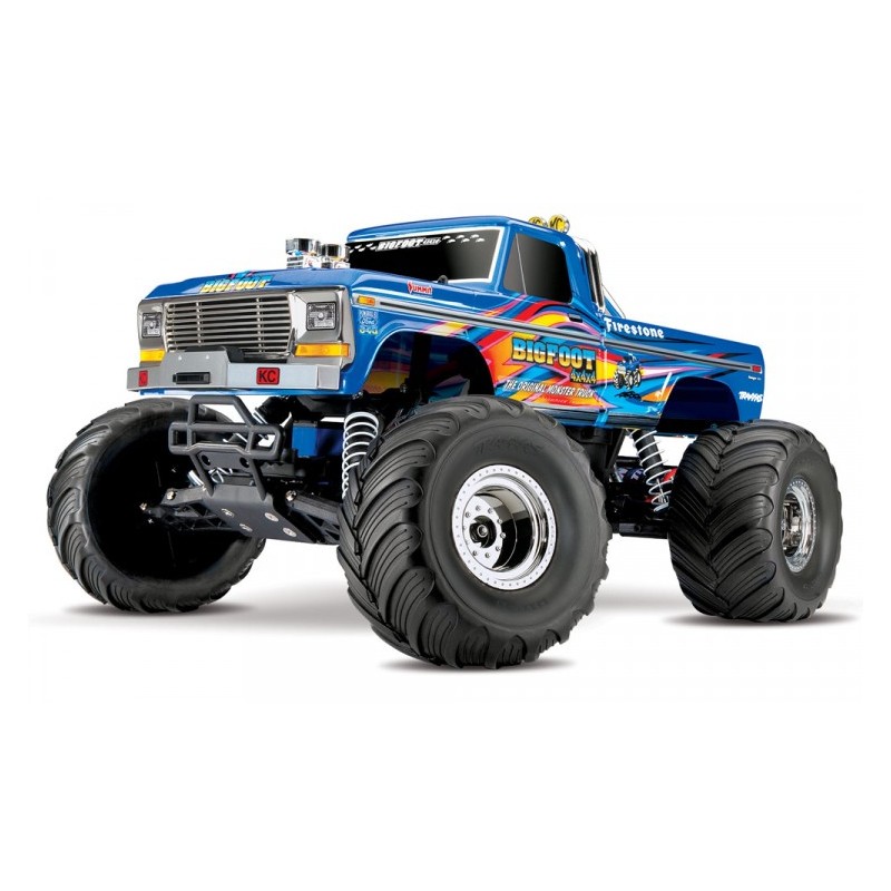 BIGFOOT No. 1 (the full-size truck) BIGFOOT® is “The Original Monster Truck”. This is the truck that started the monster truck phenomenon and brought car-crushing fun and excitement to fairgrounds and arenas everywhere. Traxxas faithfully captures the spirit and classic look of BIGFOOT No. 1 in amazing detail with this fully licensed replica. Relive the thrill of your first monster truck event with this classic powerhouse. Hammer the throttle for non-stop wheelies and crush the competition underneath its towering stance. Built Traxxas Tough™ for all-day fun, BIGFOOT comes out of the box fully assembled, waterproof, and Ready-To-Race®.