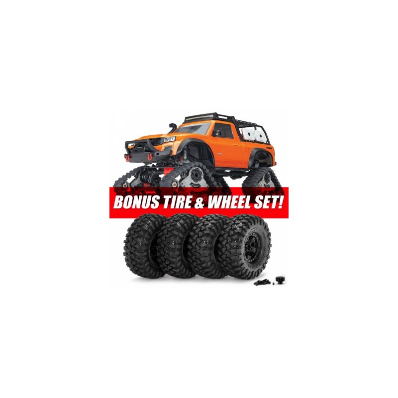 Outfitted with Traxx, the TRX-4 transforms into an all-terrain monster. The enormous contact patch and grippy treads shrug off the deepest mud and float across sand. Traxx’ increases ground clearance and approach angles to let you straddle even larger obstacles and climb steeper grades without breaking a sweat.